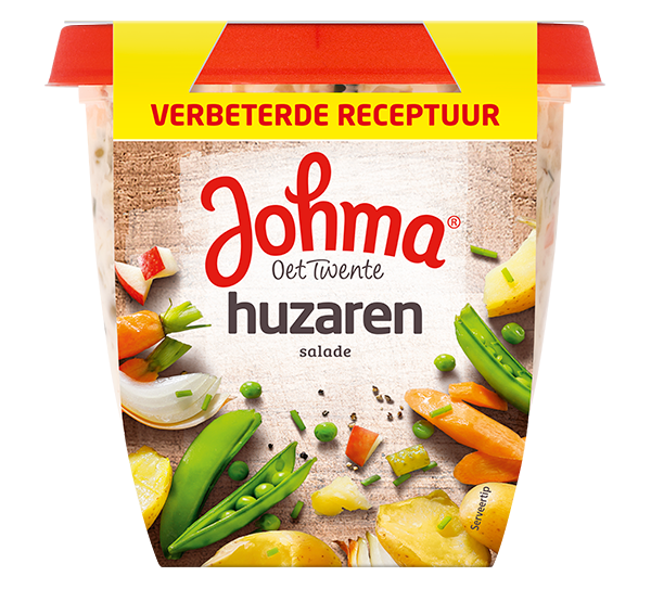 47% gestoomde aardappel, koolzaadolie, water, 5% wortel, 5% appel, 4% augurk, suiker, 2% gekookt rundvlees, 2% ui, natuurazijn, 1% doperwten, bieslook, gemodificeerd zetmeel, zout, gepasteuriseerd eigeel, natuurlijk aroma, zetmeel, specerijen (bevat mosterd), citroensapconcentraat, conserveermiddelen (kaliumsorbaat, natriumbenzoaat), gehydrolyseerd soja-eiwit, invertsuiker, aardappelvezels, rundereiwit, paprikapoeder, zuurteregelaar (natriumacetaten), verdikkingsmiddelen (guarpitmeel, xanthaangom), antioxidanten (citroenzuur, natriumascorbaat, natriumdisulfiet).